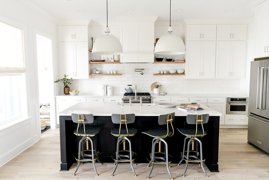 Bright modern kitchen with island seating and white cabinetry in custom-built home at 1081 18th Ave N.